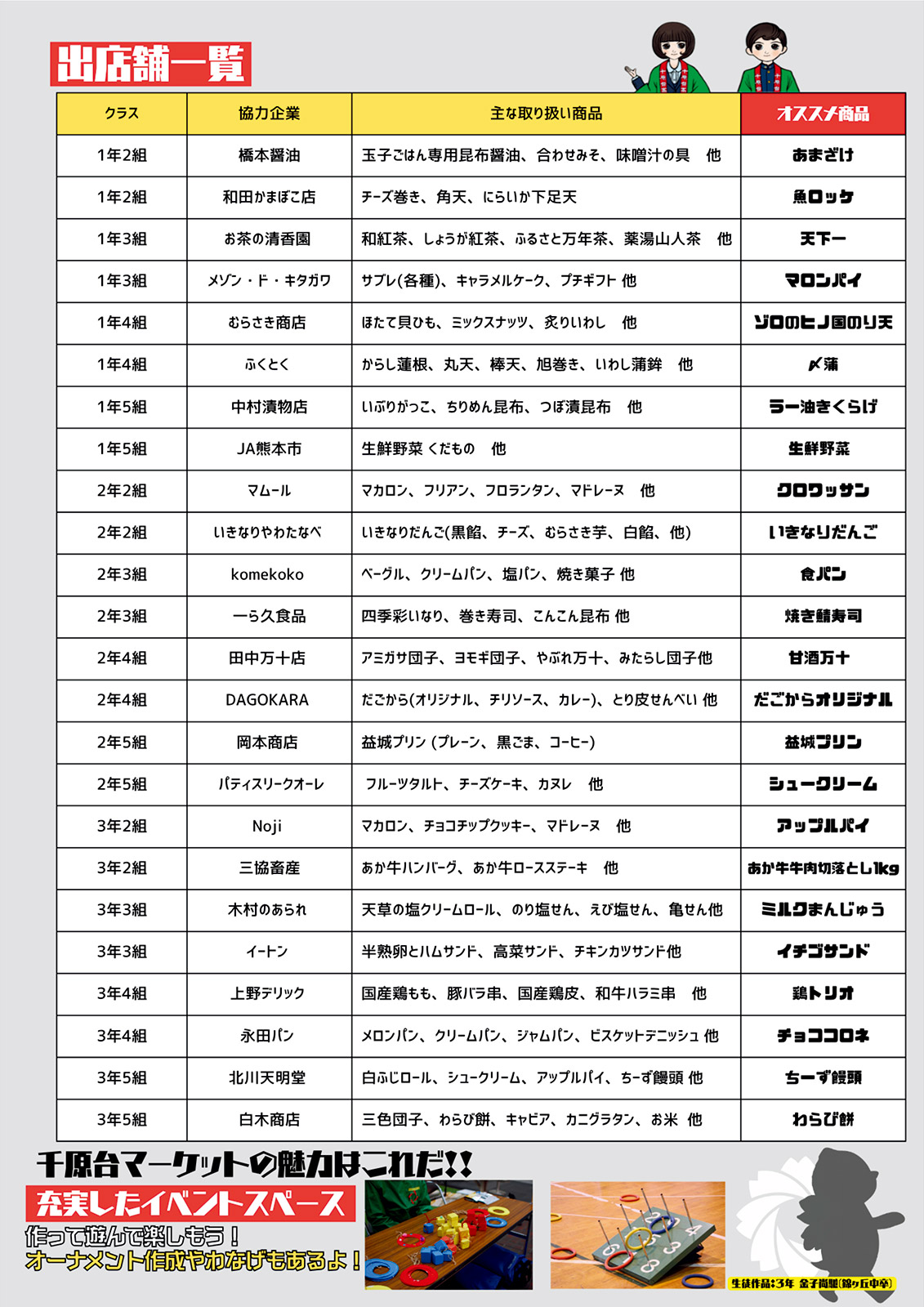 内容: 千原台高校の生徒による販売会 商品選定から仕入れ交渉、販売に至るまでの過程を生徒自らが主体となって実施 参加生徒:354名